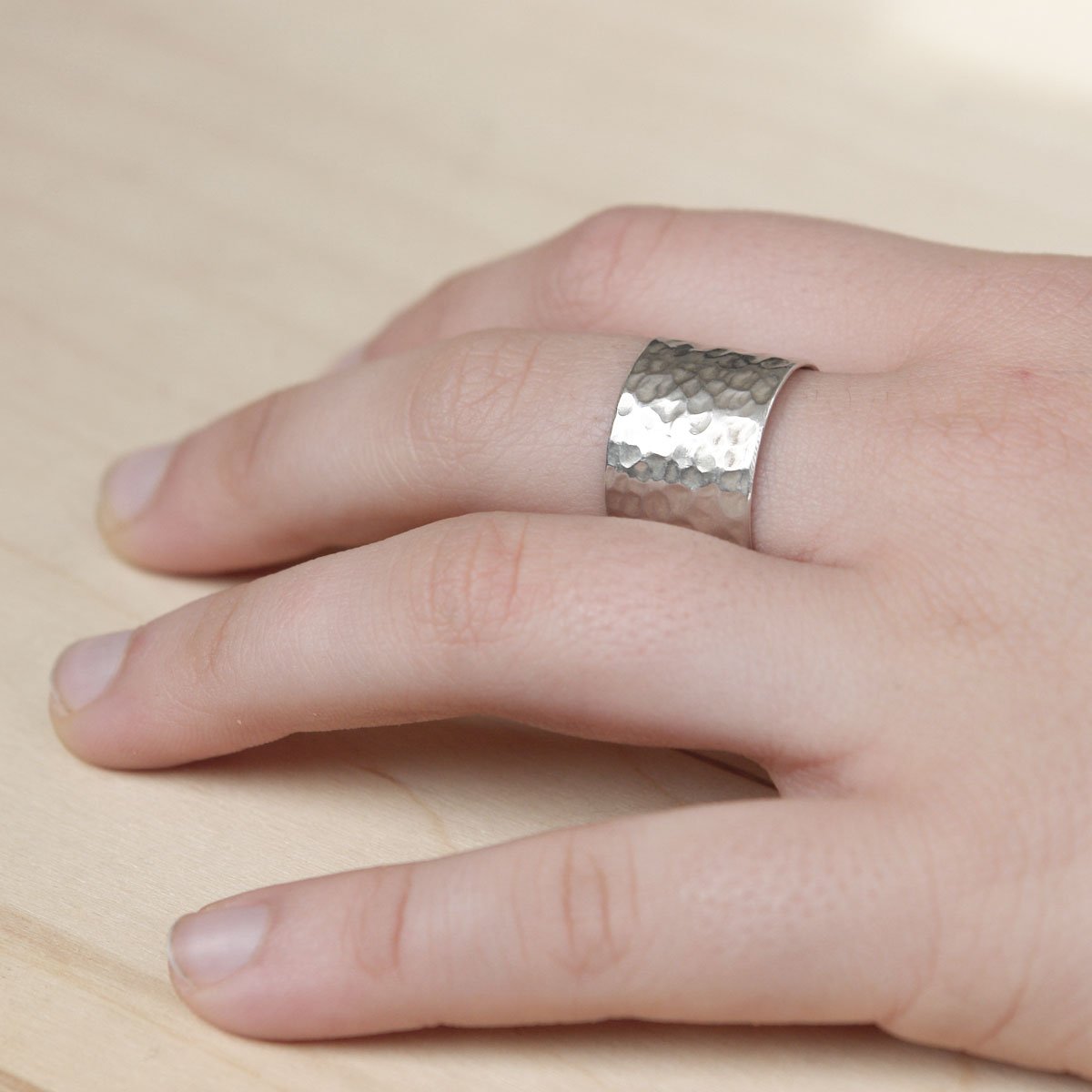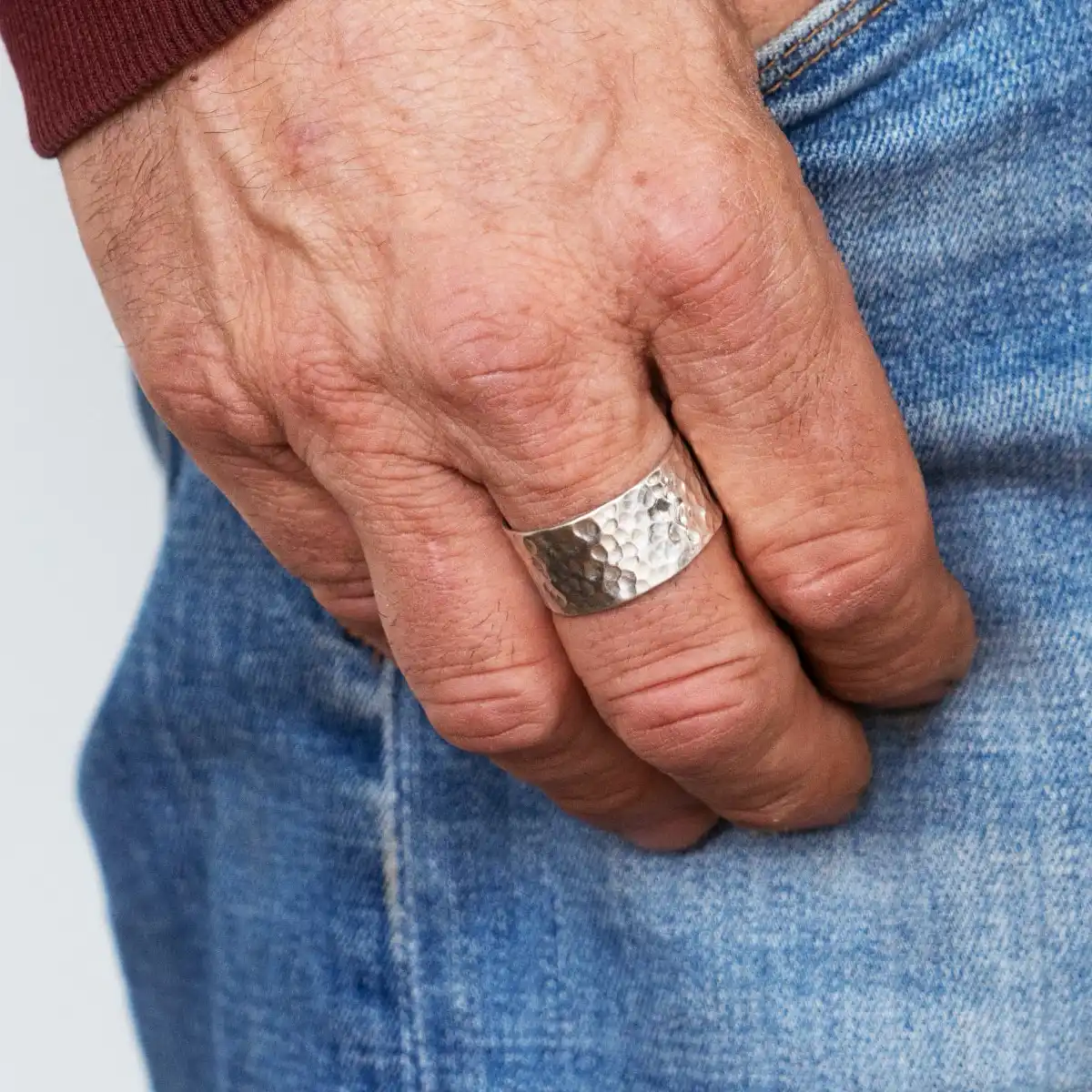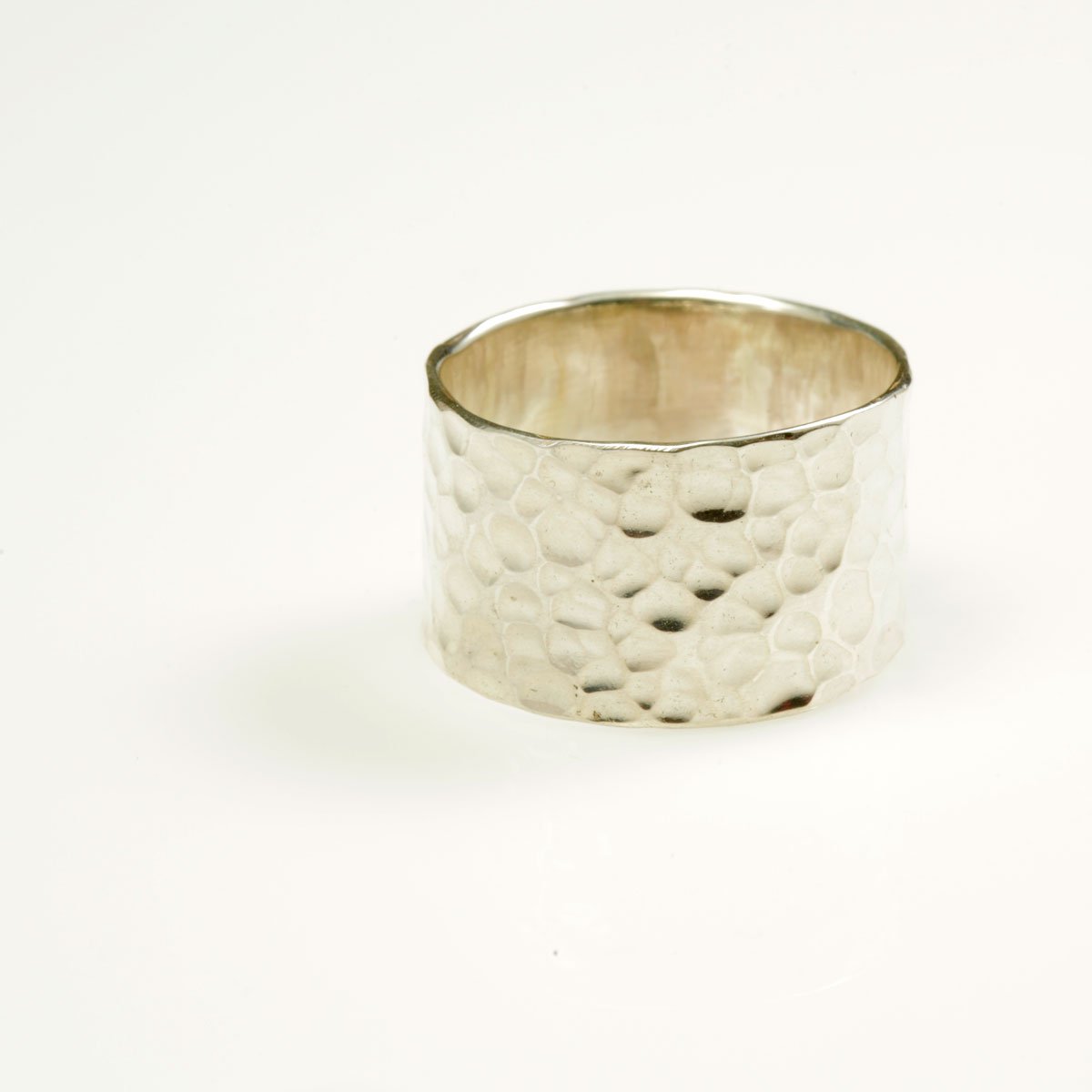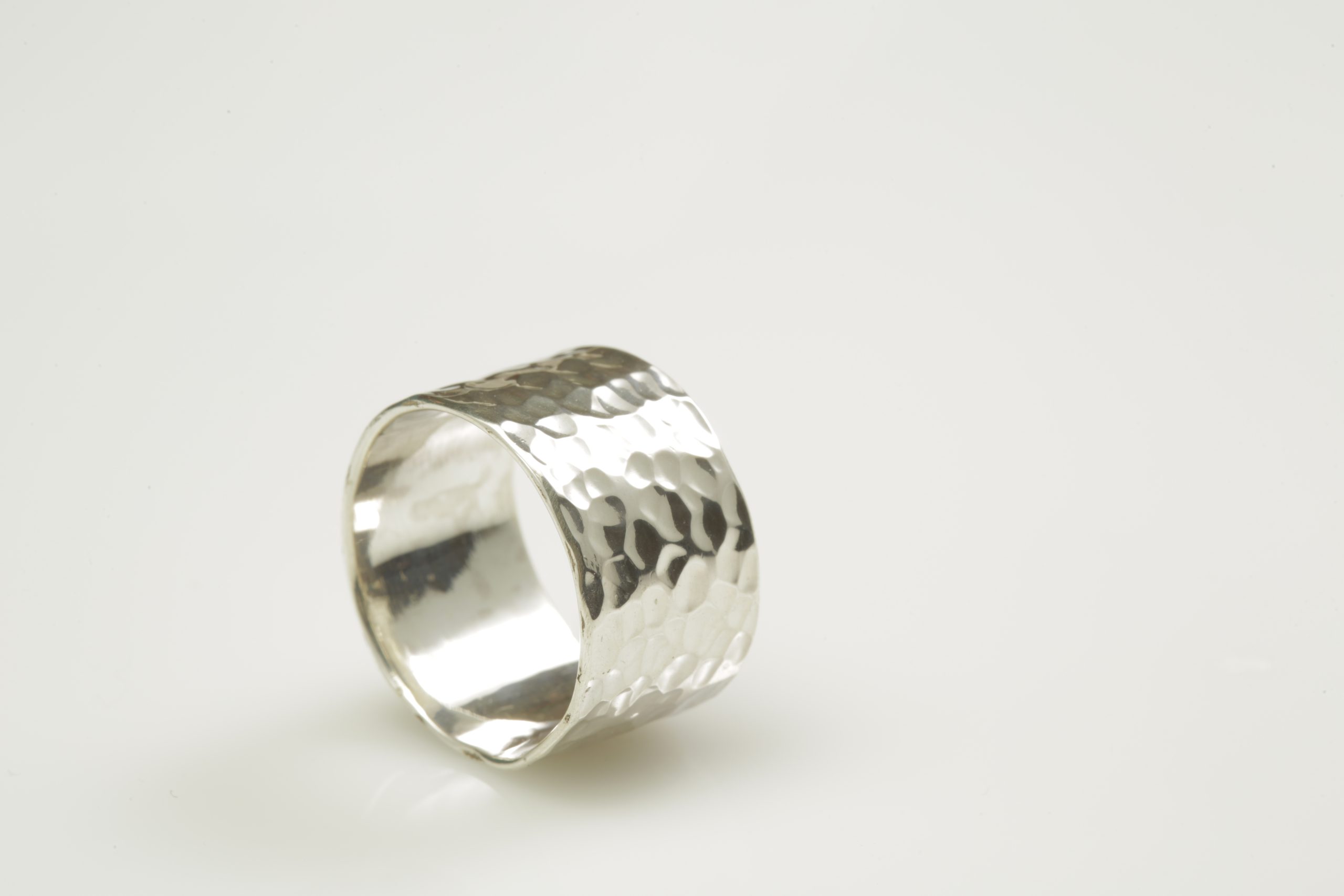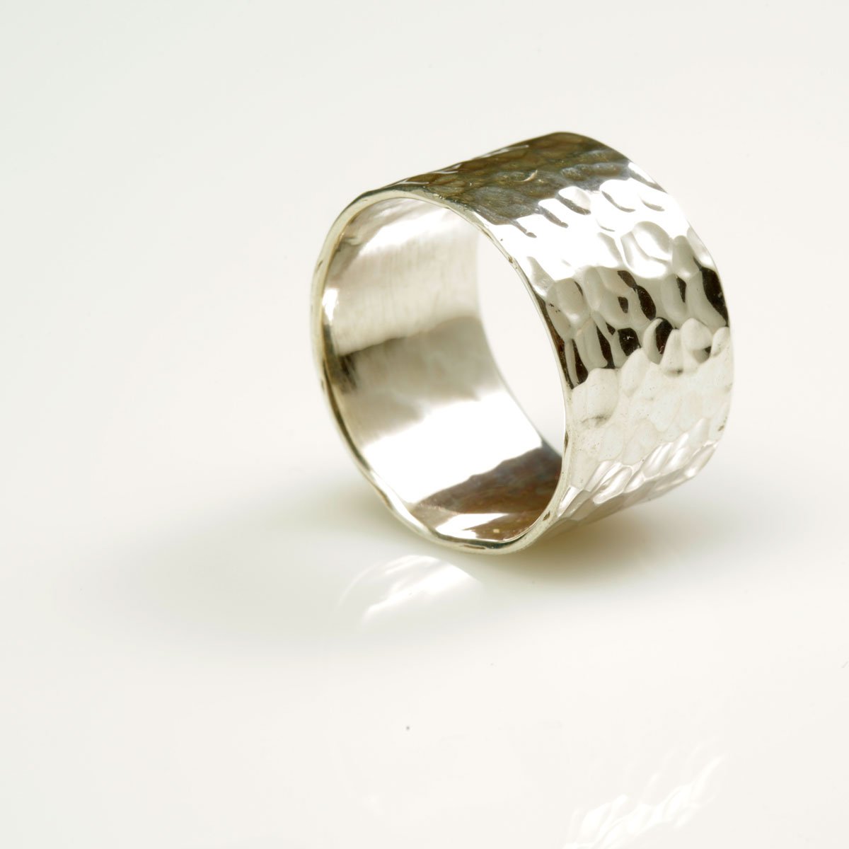 Este anillo de plata, es un clásico del taller que llevo realizando desde mis comienzos. Un anillo tanto para hombre como para mujer muy cómodo de llevar, con un acabado a base de martillo que le da originalidad y distinción. Puedes encontrarlo en versión liso u otros acabados.
