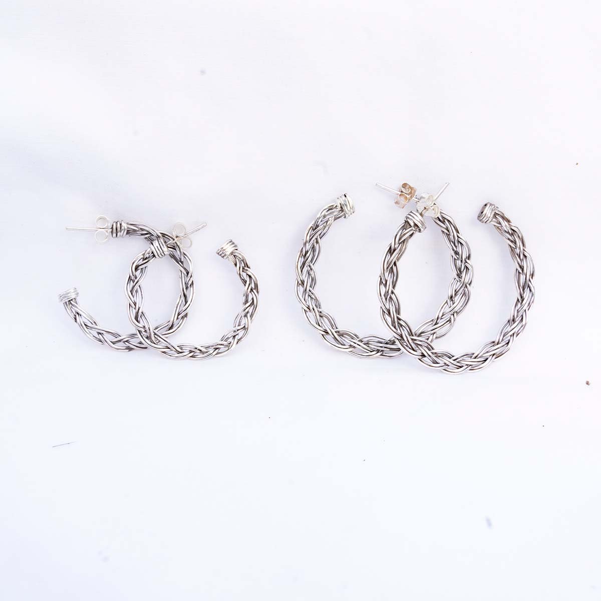 Aros con trenzado celta de 6 hilos de plata los tienes en tamaño pequeño de 3o mm. y grande de 40mm. de diametro