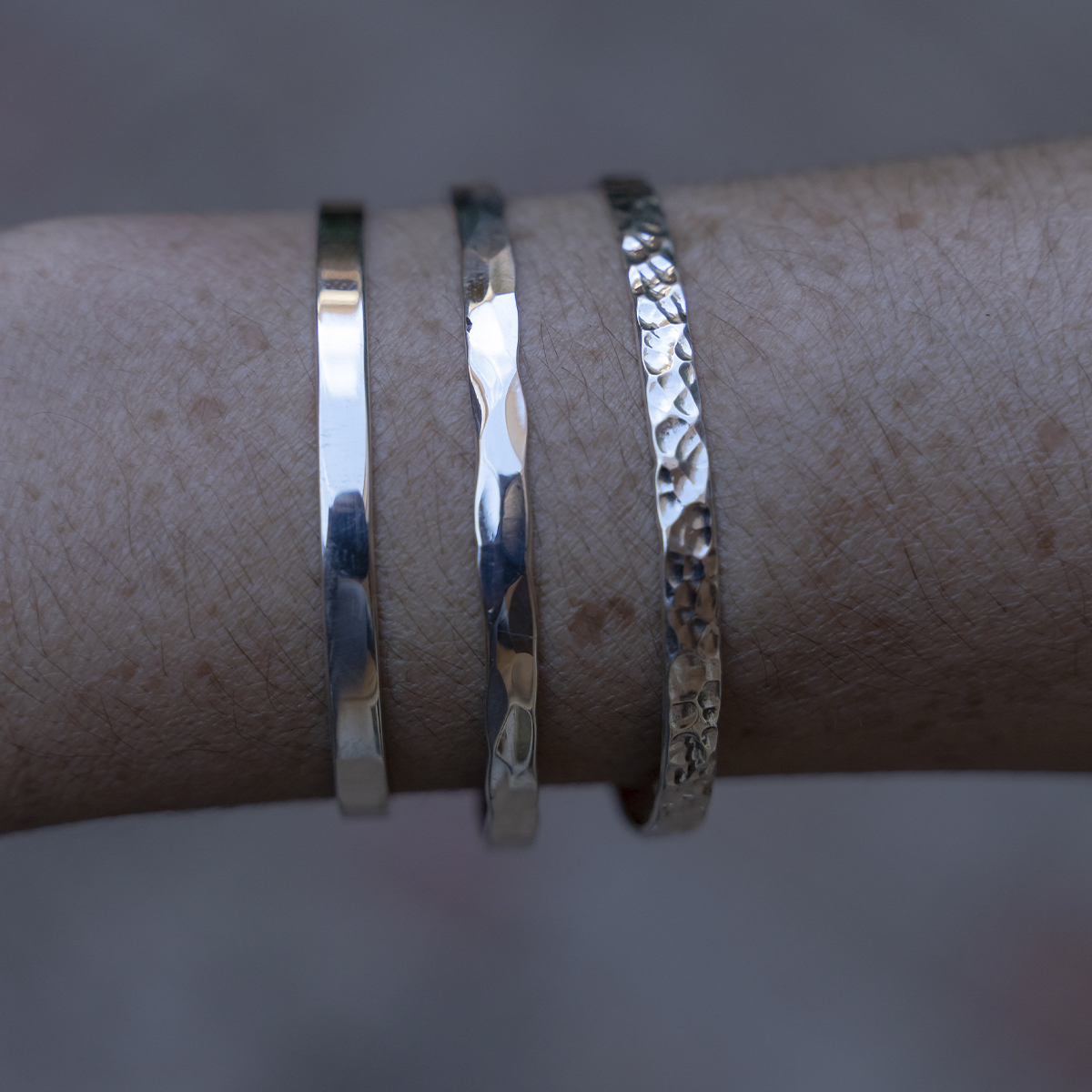 Pulsera de plata rígida fina lisa. Un diseño sencillo. No llevan cierre, son abiertas y cómodas de poner y quitar.